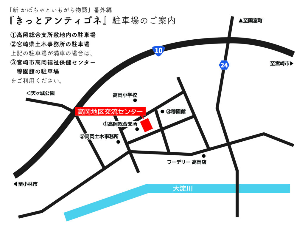 上記駐車場が満車の場合は、③宮崎市高岡福祉保健センター穆園館(ぼくえんかん)の駐車場をご利用ください。
