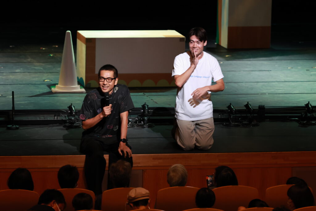 また、本公演ではろう者のお客さまに向けた鑑賞サポートを実施しました。本作では、NHK「手話で楽しむみんなのテレビ」「みんなの手話」等、さまざまなメディアや公演に出演しているろう俳優の西脇将伍さんが妖精パック役として出演。上演台本の事前貸出や、字幕タブレット、場内アナウンスの手話通訳などを実施し、初めて劇場にきたというろう者のお客さまも。作品の最後では手話のパフォーマンスもあり、アンケートではそのシーンに感動したというお声も多くいただきました。