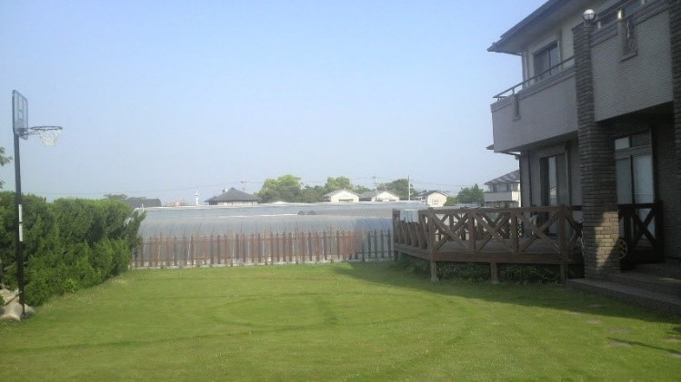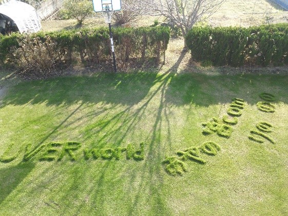 ※庭に冬芝の種をまき、娘の好きなバンド名とバスケットコートを描いています。 毎年デザインを考え楽しんでいました♪