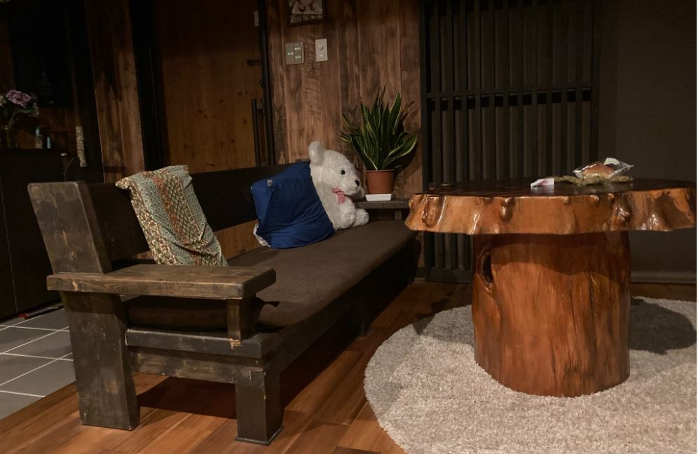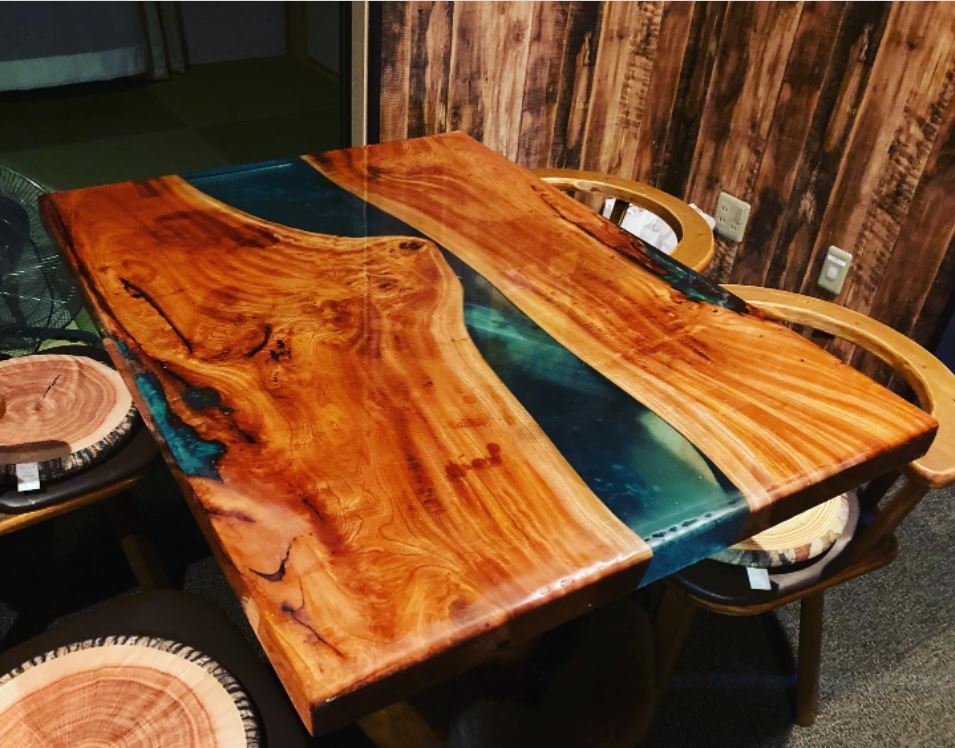 家具作り第一号は、持ち家を所有した年にリビングテーブルを作ろうとガレージ脇にてコツコツと作業を始めた。天然の形を最大限活かしたテーブルに製作意欲をかき立てられ、家具を作る楽しさを知ってしまった。
