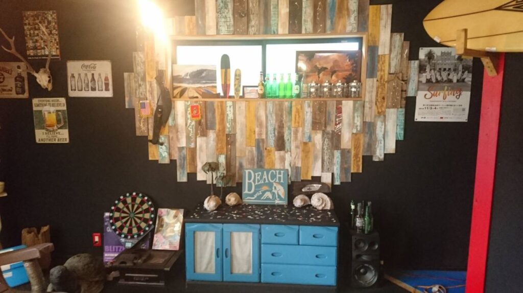 5年前に念願の新居を構えたが、趣味を最大限に活かせる「離れ」を建てた。建物の外装までは建築業者に依頼したが、内装はどうしても自分で好きに作りたいと思い、工事を打ち切ってもらい引渡しをお願いした。「古き良き時代のアメリカ」をテーマに壁や柱を塗装し、無造作にブリキの看板を釘打ちし、リメイク家具を配置。柱が真っ赤な家は他に存在しないと思う(笑)最終的には内外壁を切って窓を2箇所設置した。新築完成1ヶ月も経たない内に内外壁に穴を開ける人はどこを探しても居ないだろう(笑)完全自己責任で筋交いを切断(もちろん補強はしたけど)、しっかりと防水対策を施した窓を設置した。自由に壁に釘を打ち、壁に穴を開け、色に飽きたら塗り替えOKだなんて、普通の家ではないであろう。