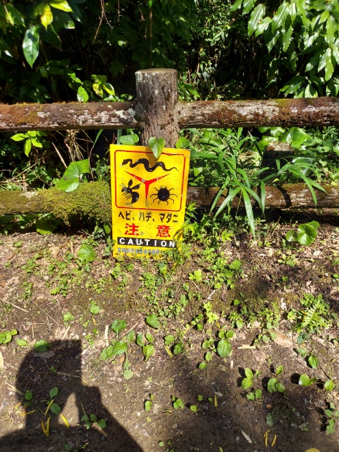 2か月ぶりの加江田渓谷、300mくらい行ったところに、人ひとりがやっと通れる柵があります。その先には「ヘビ、ハチ、マダニ」注意の看板、秋は特に注意が必要と思う。ハチは黒い物を刺すと聞いていますし、またマダニ対策としては、長袖、長ズボン等で噛まれないよう注意が必要です。話が逸れました。