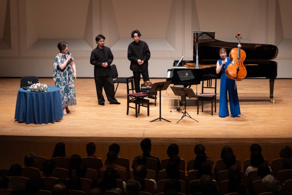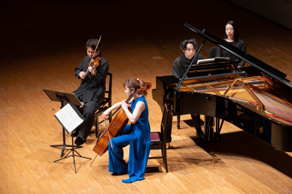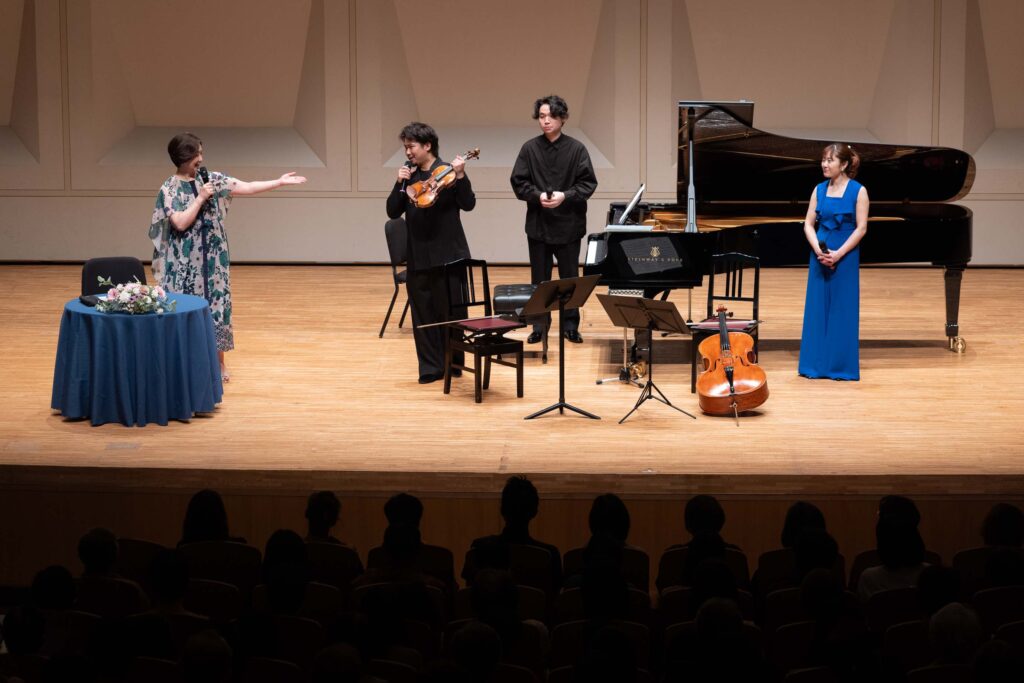 4月29日は、三浦文彰新音楽監督が解き明かす「室内楽の秘密」。三浦監督のヴァイオリン、清水詩織さんのチェロ、髙木竜馬さんのピアノ、そこにアナウンサーの中井美穂さんの巧みな掛け合いが加わりました。