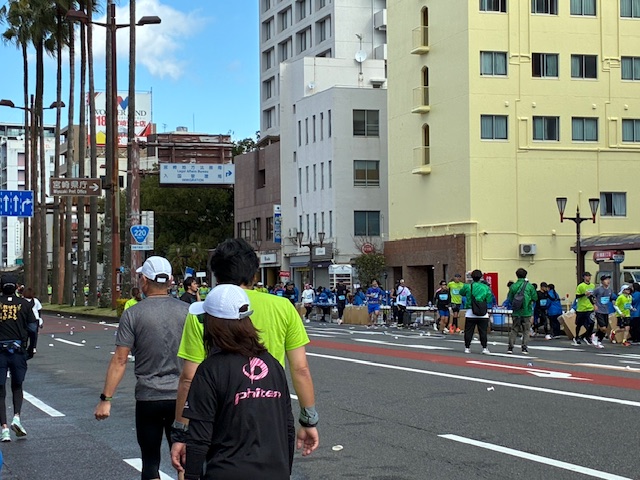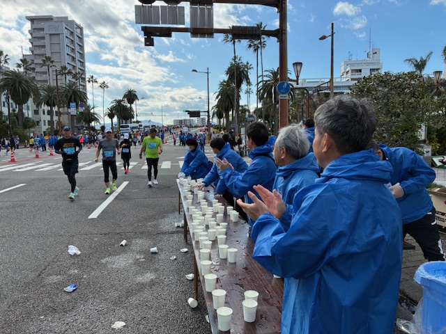 1万人を超えるランナーが全国から参加。去年は沿道での観戦でしたが、今年は宮崎市役所近くの路上で給水ボランティア。