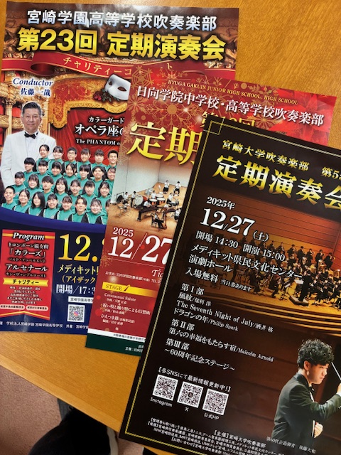 2025年を締めくくる26日と27日は吹奏楽三昧。宮崎学園、日向学院、宮大の吹奏楽部の演奏会が開催され、大勢の方が楽しまれていました。