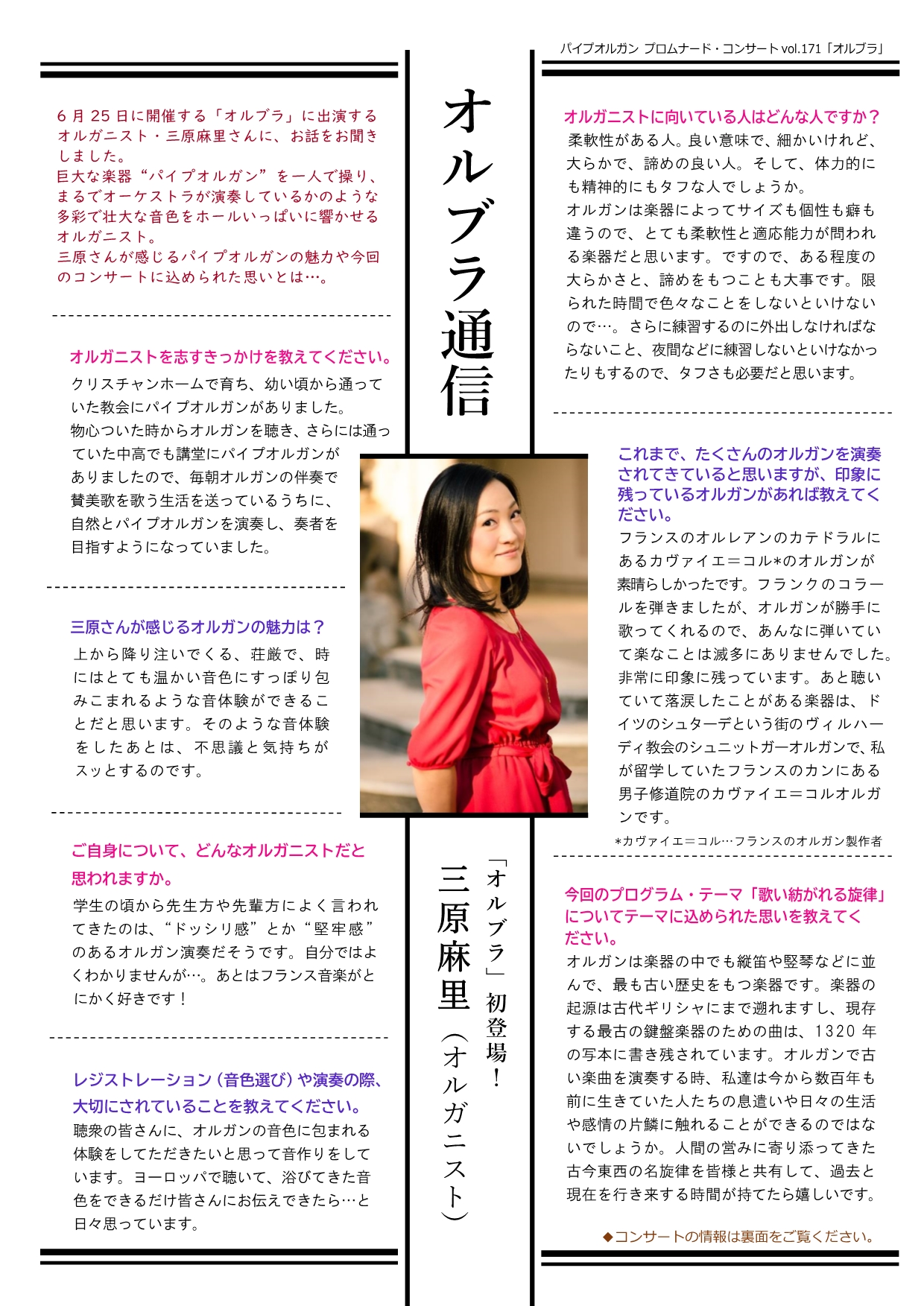 パイプオルガン プロムナード・コンサート vol.171「オルブラ」
