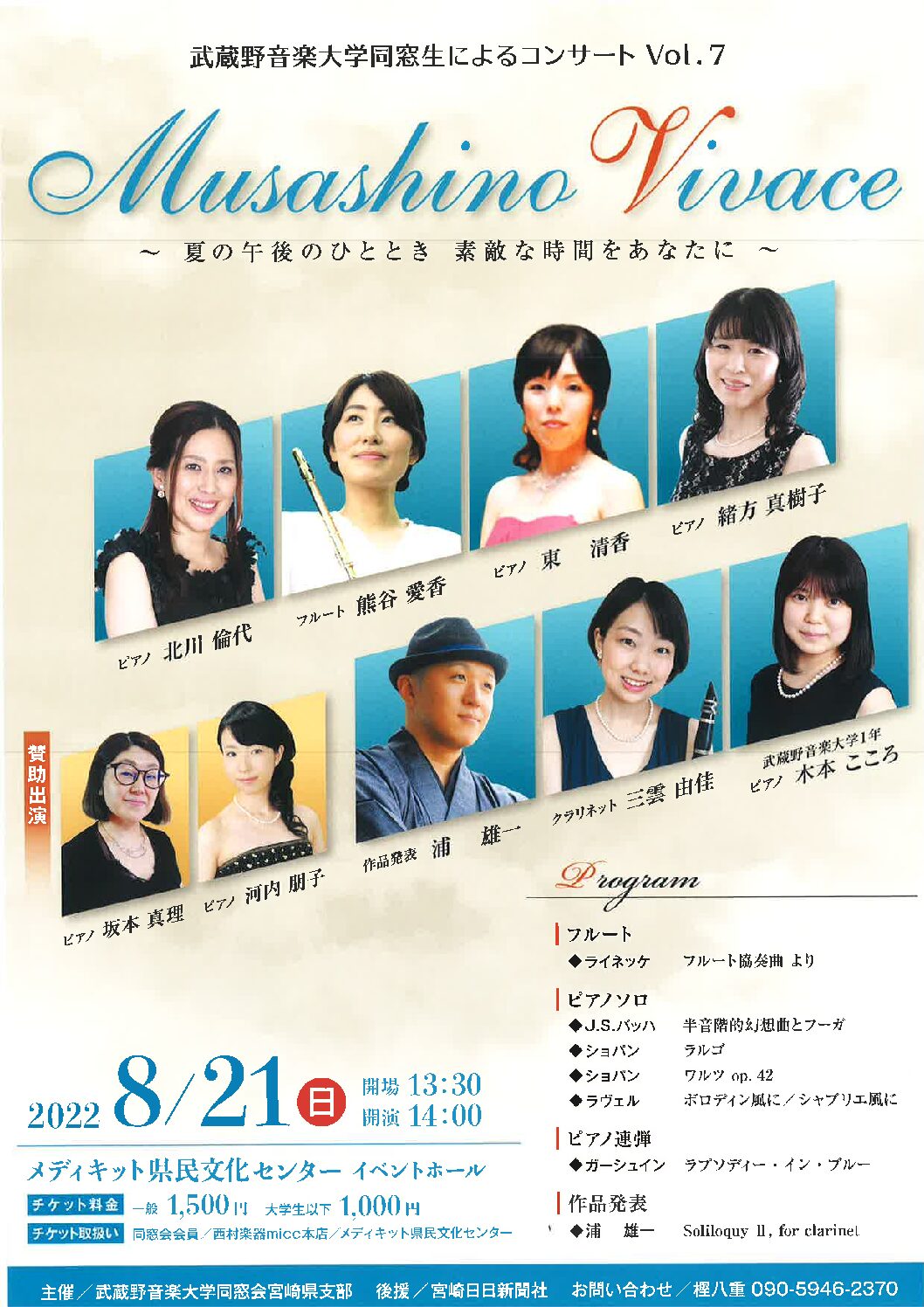 武蔵野音楽大学同窓生によるコンサートvol.7 Musashino Vivace~夏の午後のひととき 素敵な時間をあなたに~