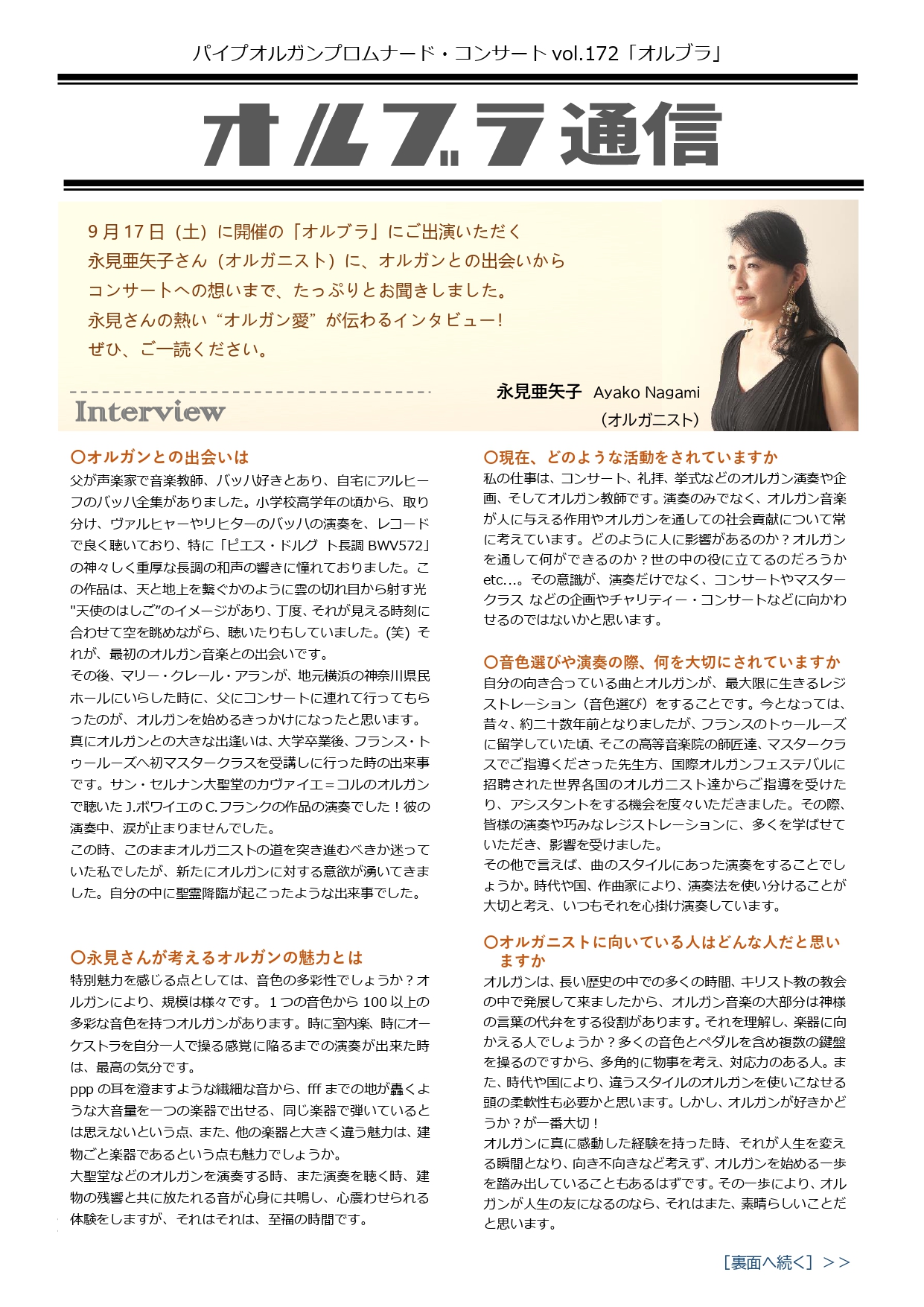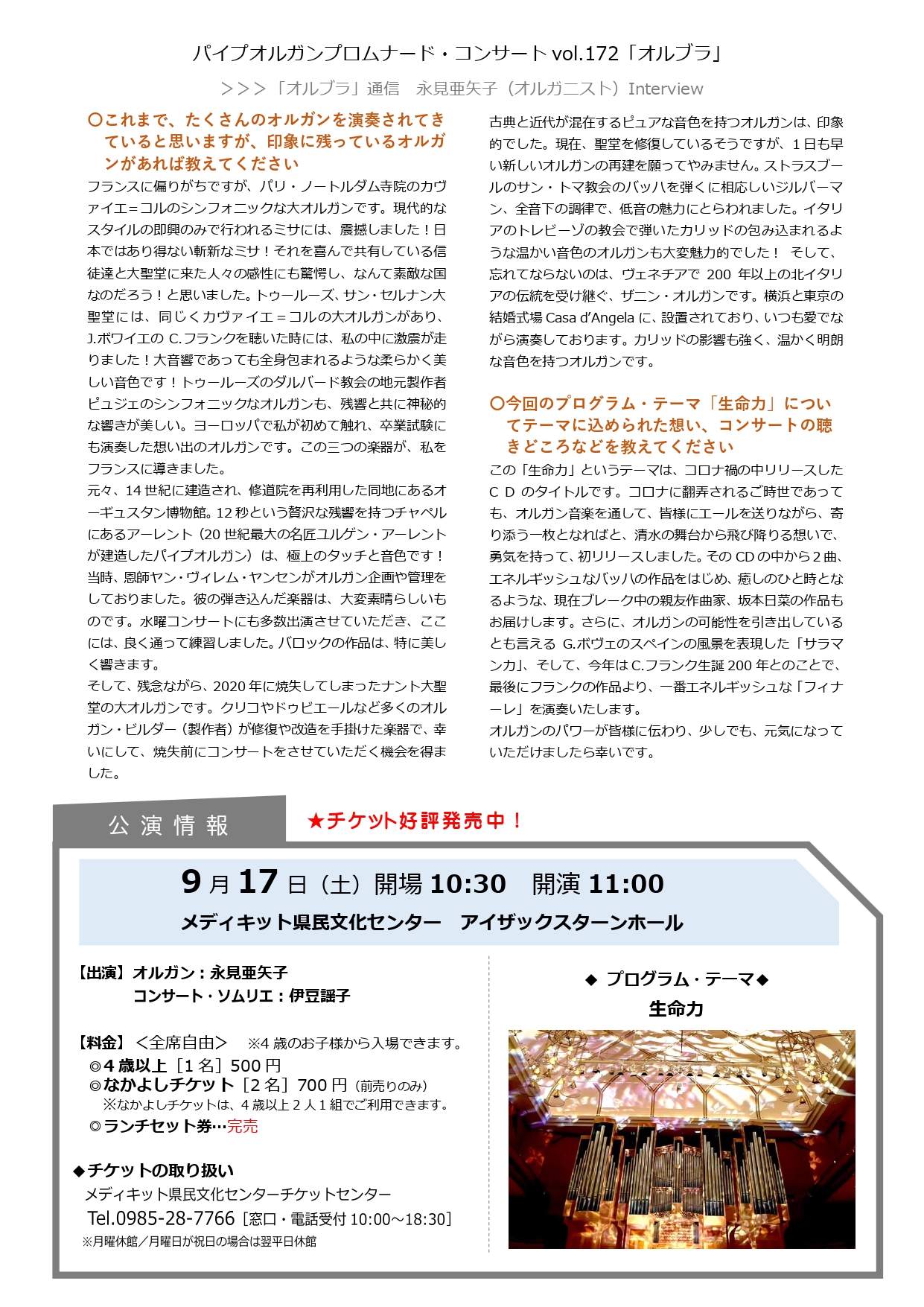 パイプオルガン プロムナード・コンサート vol.172「オルブラ」