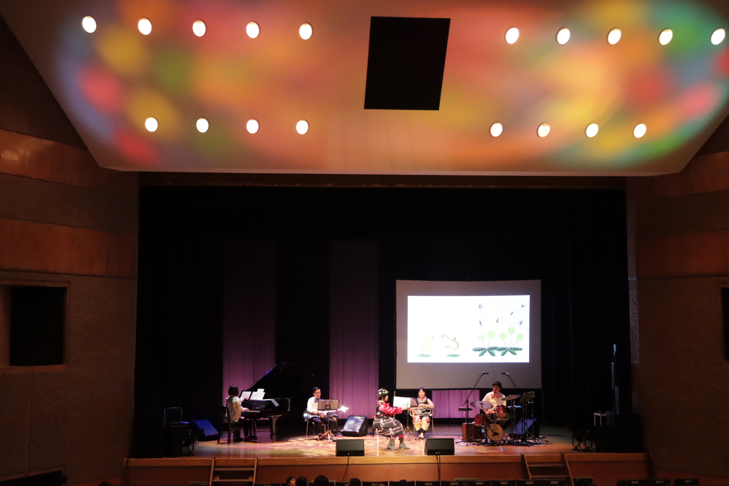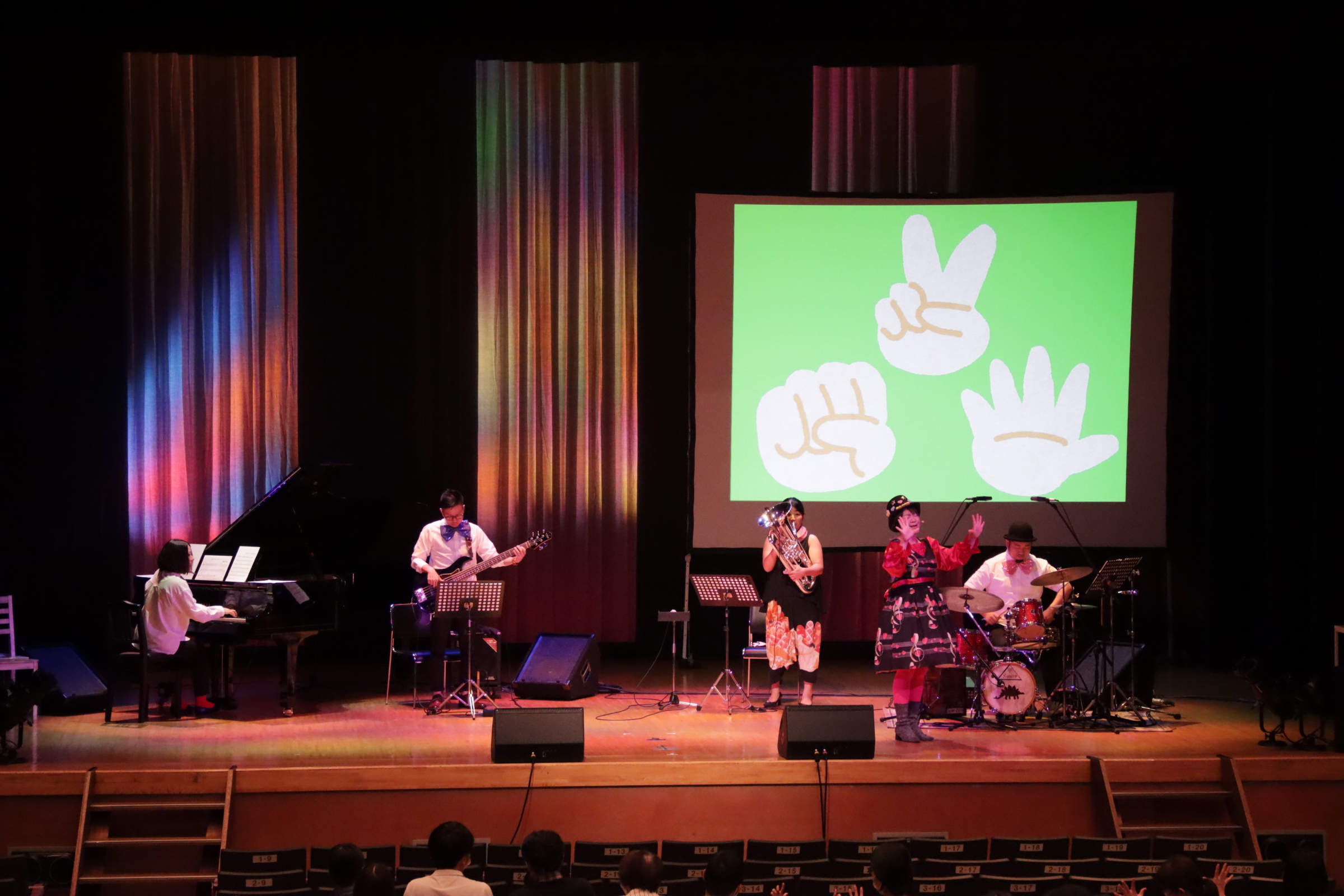 0歳のお子様から音楽に楽しく触れることができる「おんがくのおもちゃ箱シリーズ」。ドラム・ベース・ピアノ・歌・ユーフォニアムの5人編成でおくる生バンドの演奏を、家族みんなで楽しもう♪