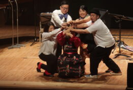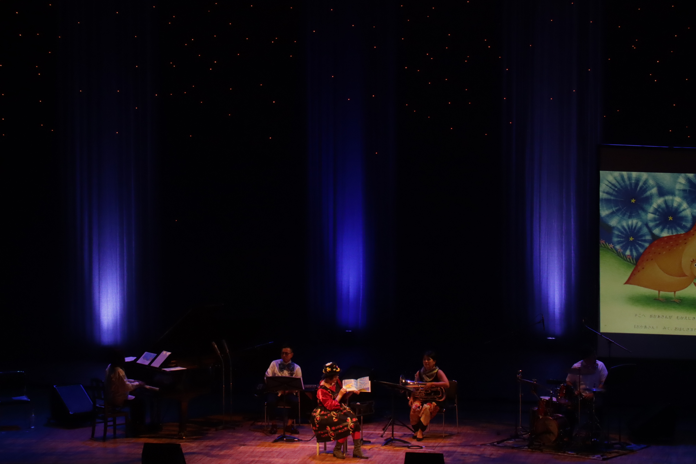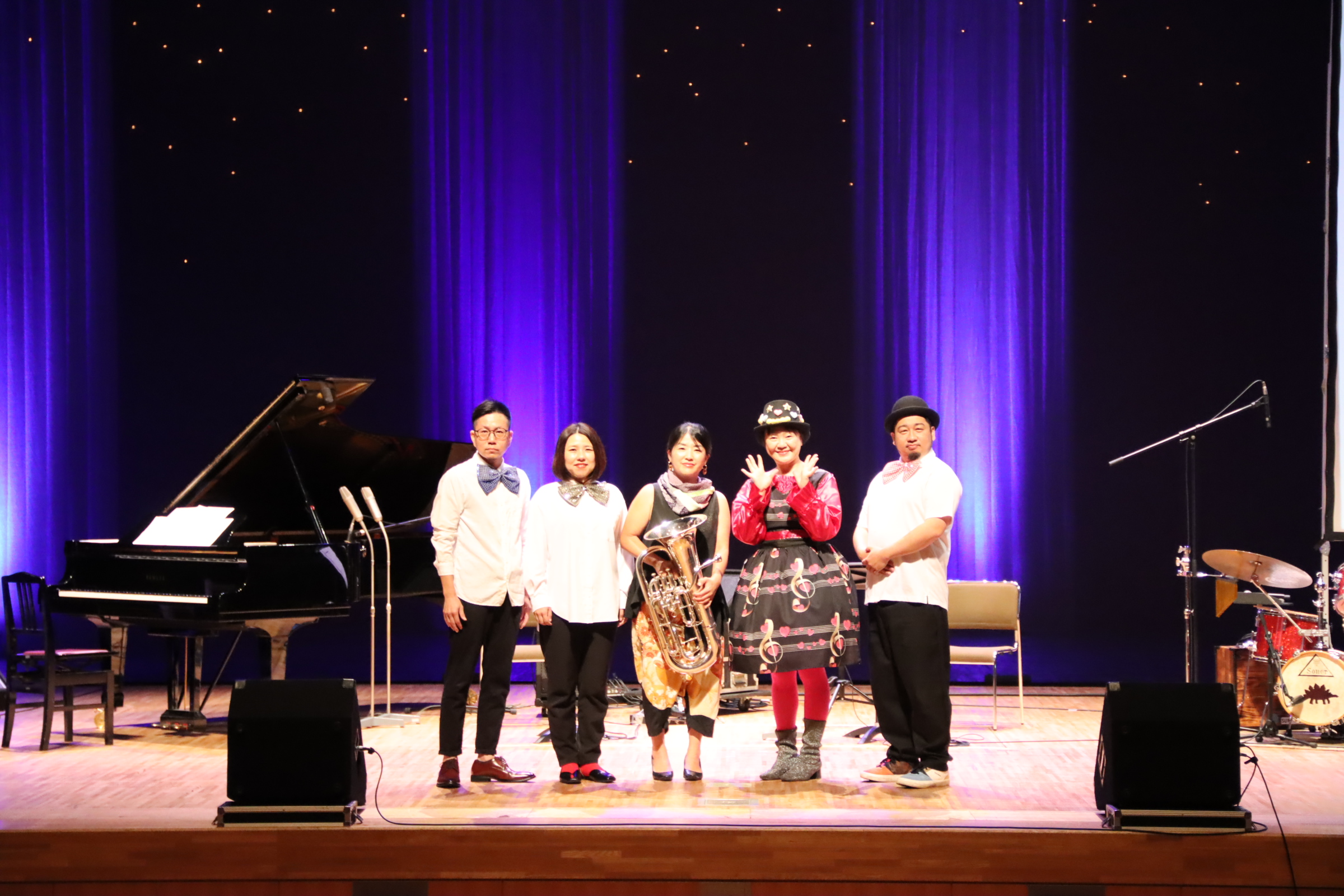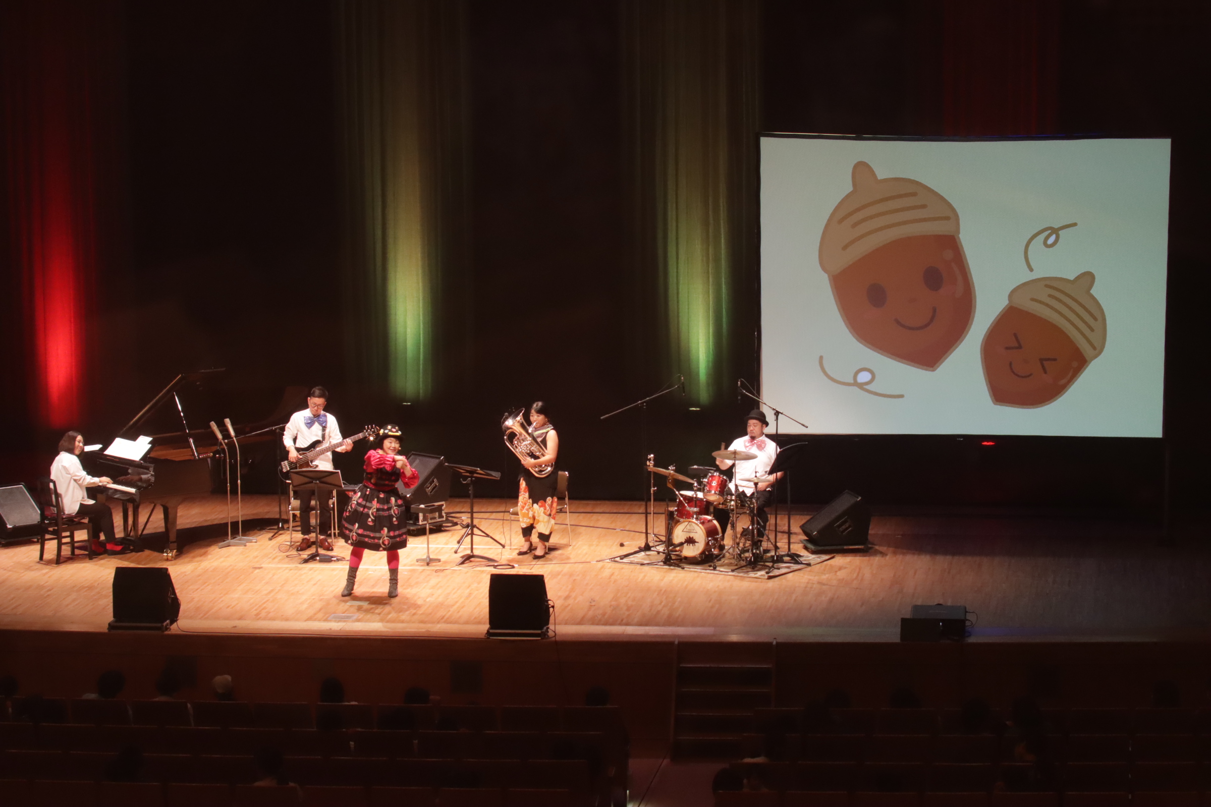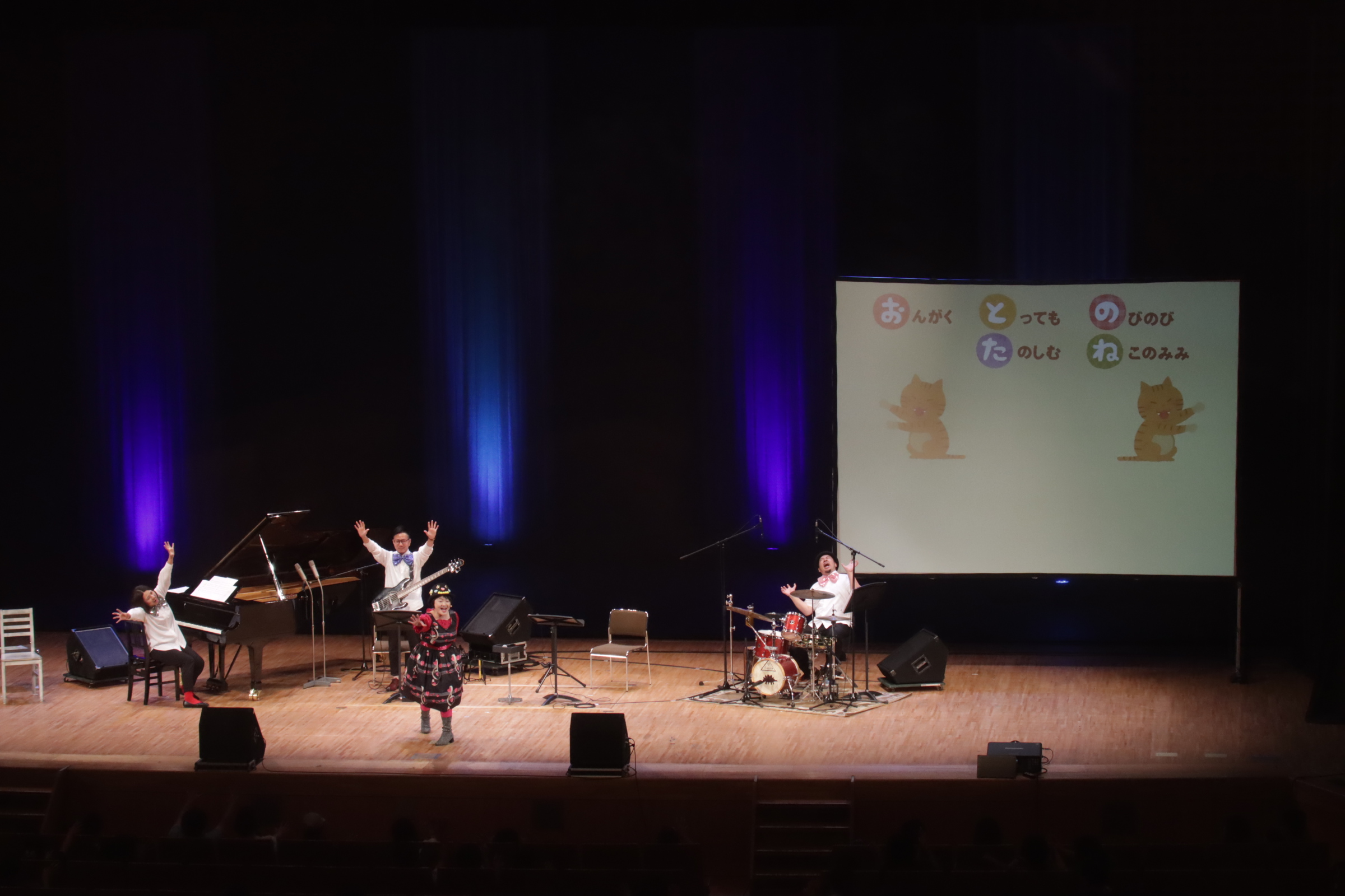 0歳のお子様から音楽に楽しく触れることができる「おんがくのおもちゃ箱シリーズ」。ドラム・ベース・ピアノ・歌・ユーフォニアムの5人編成でおくる生バンドの演奏を、家族みんなで楽しもう♪