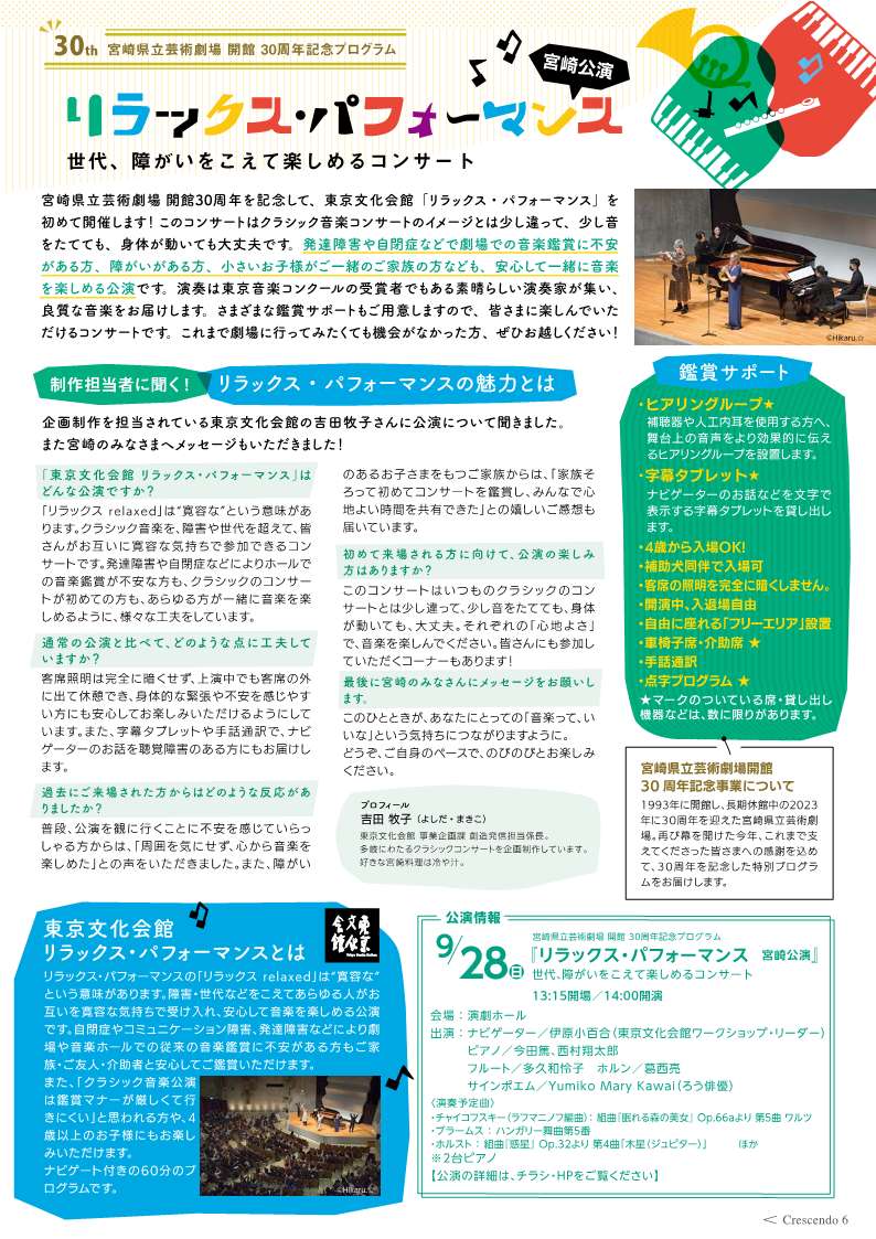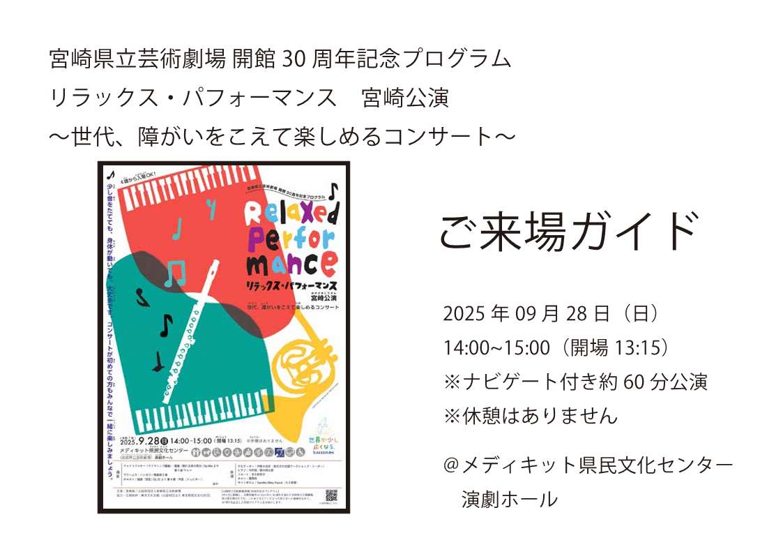 宮崎県立芸術劇場 開館 30周年記念プログラム リラックス・パフォーマンス 宮崎公演 ~世代、障がいをこえて楽しめるコンサート~