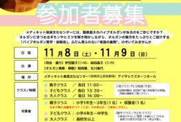 <blockquote class="wp-embedded-content" data-secret="IONlMEd0F3"><a href="https://test.miyazaki-ac.jp/event/2025/29985/">パイプオルガン見学・体験会「オルガンふしぎ発見!」</a></blockquote><iframe sandbox="allow-scripts" security="restricted" src="https://test.miyazaki-ac.jp/event/2025/29985/embed/#?secret=IONlMEd0F3" width="600" height="400" title="“パイプオルガン見学・体験会「オルガンふしぎ発見!」” — メディキット県民文化センター" data-secret="IONlMEd0F3" frameborder="0" marginwidth="0" marginheight="0" scrolling="no" class="wp-embedded-content"></iframe><script type="text/javascript"> /* <![CDATA[ */ /*! This file is auto-generated */ !function(d,l){"use strict";l.querySelector&&d.addEventListener&&"undefined"!=typeof URL&&(d.wp=d.wp||{},d.wp.receiveEmbedMessage||(d.wp.receiveEmbedMessage=function(e){var t=e.data;if((t||t.secret||t.message||t.value)&&!/[^a-zA-Z0-9]/.test(t.secret)){for(var s,r,n,a=l.querySelectorAll('iframe[data-secret="'+t.secret+'"]'),o=l.querySelectorAll('blockquote[data-secret="'+t.secret+'"]'),c=new RegExp("^https?:$","i"),i=0;i<o.length;i++)o[i].style.display="none";for(i=0;i<a.length;i++)s=a[i],e.source===s.contentWindow&&(s.removeAttribute("style"),"height"===t.message?(1e3<(r=parseInt(t.value,10))?r=1e3:~~r<200&&(r=200),s.height=r):"link"===t.message&&(r=new URL(s.getAttribute("src")),n=new URL(t.value),c.test(n.protocol))&&n.host===r.host&&l.activeElement===s&&(d.top.location.href=t.value))}},d.addEventListener("message",d.wp.receiveEmbedMessage,!1),l.addEventListener("DOMContentLoaded",function(){for(var e,t,s=l.querySelectorAll("iframe.wp-embedded-content"),r=0;r<s.length;r++)(t=(e=s[r]).getAttribute("data-secret"))||(t=Math.random().toString(36).substring(2,12),e.src+="#?secret="+t,e.setAttribute("data-secret",t)),e.contentWindow.postMessage({message:"ready",secret:t},"*")},!1)))}(window,document); /* ]]> */ </script>