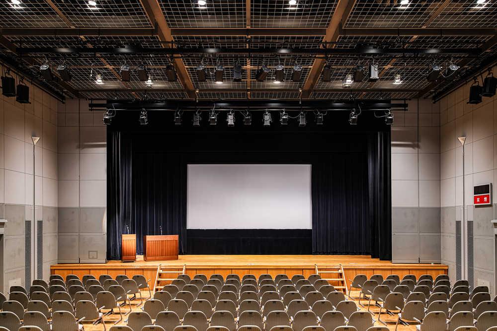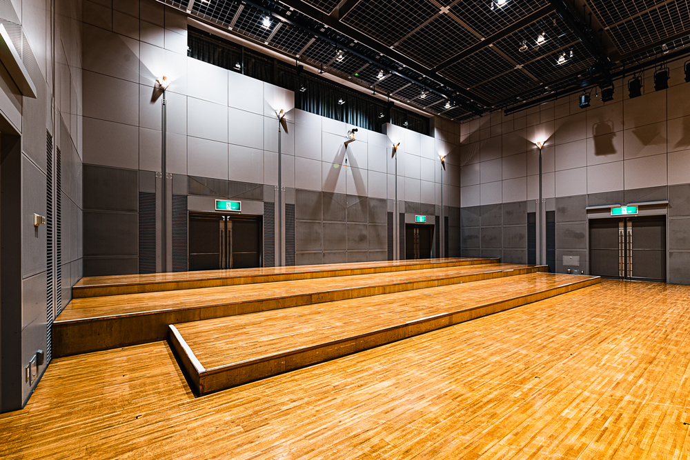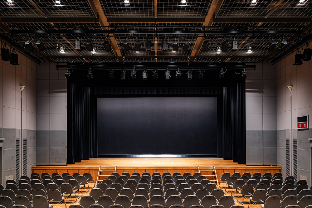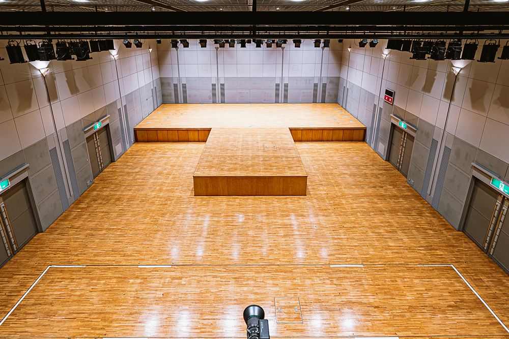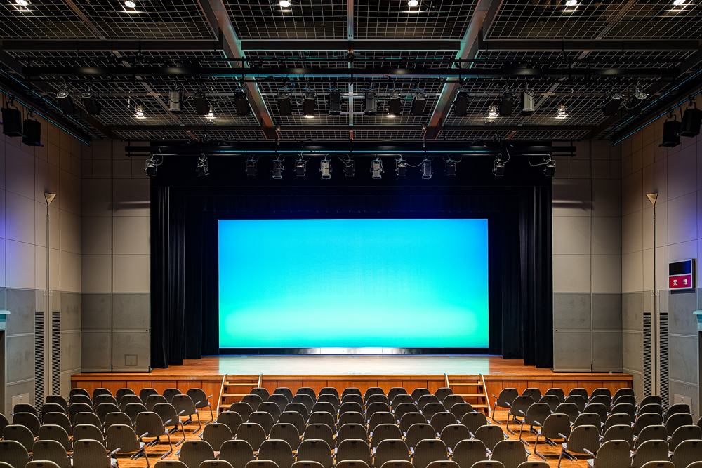 ステージ⾯を客席床⾯と同じ⾼さとすることで、1つの空間(ホール)としても利⽤できます。