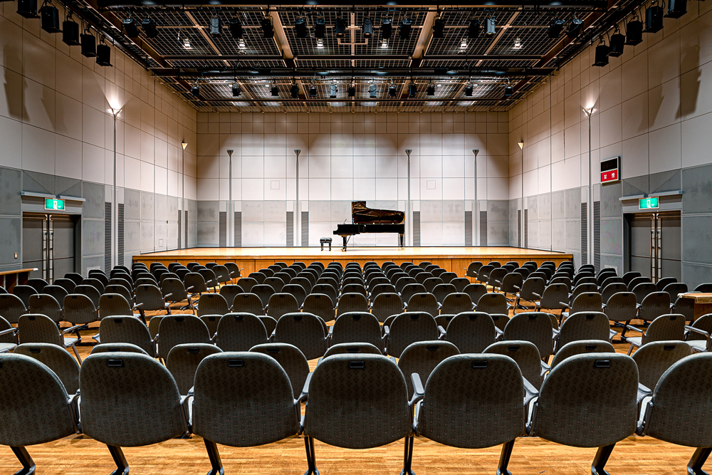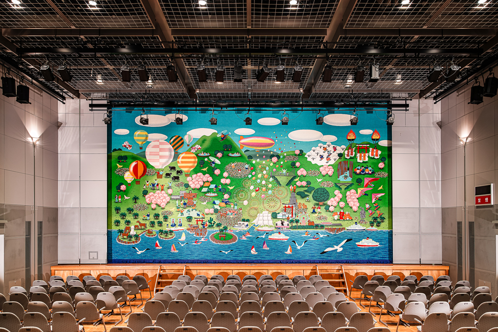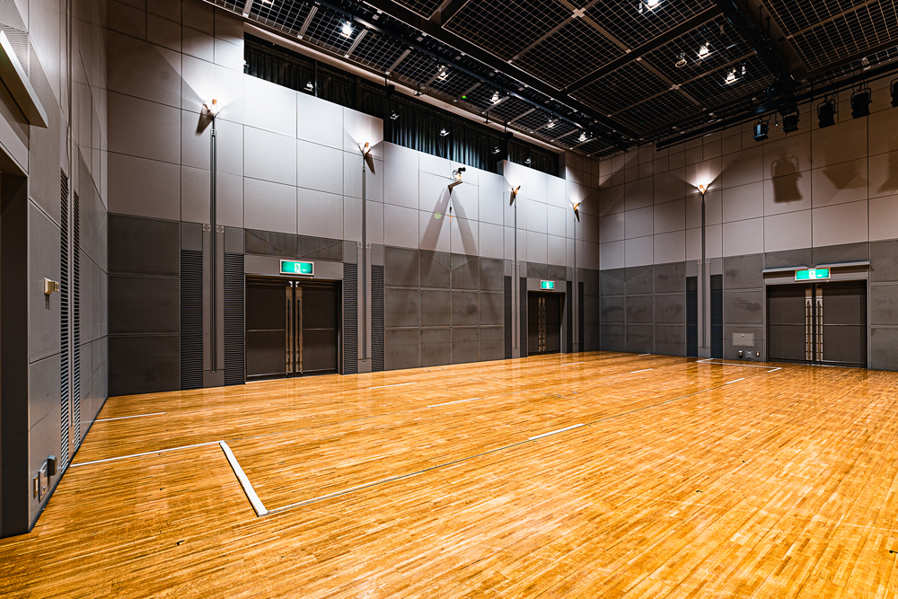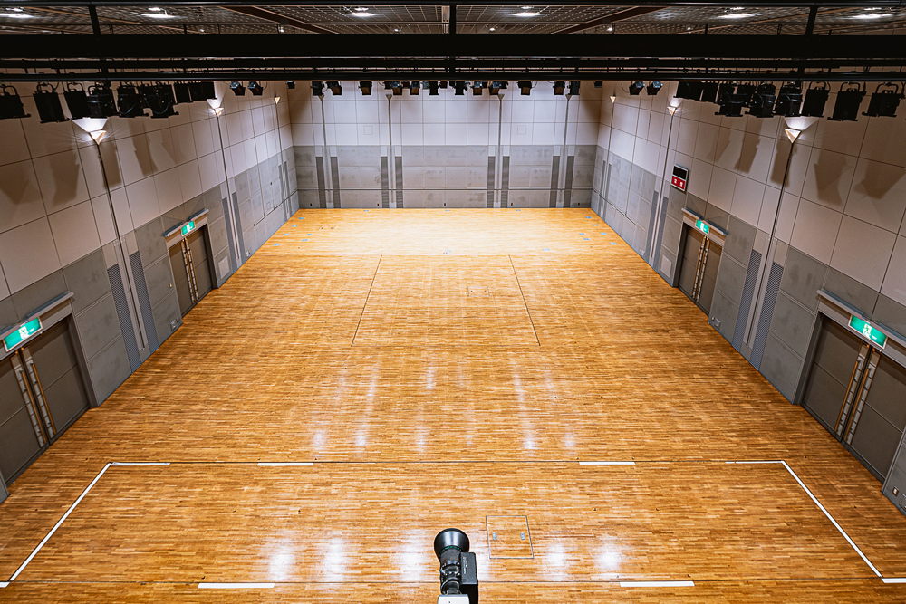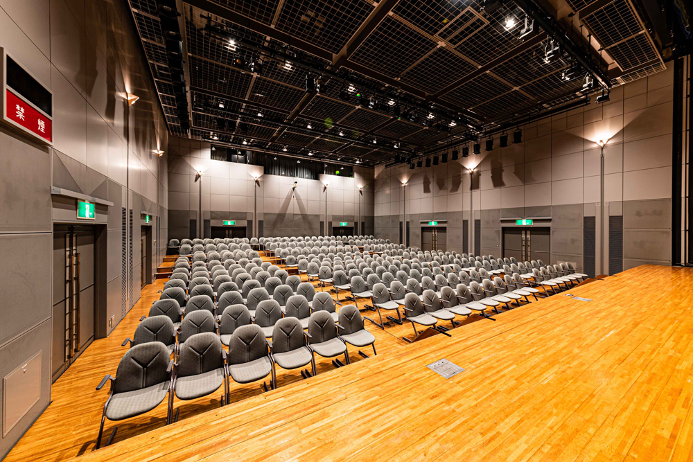 ステージ⾯を客席床⾯と同じ⾼さとすることで、1つの空間(ホール)としても利⽤できます。