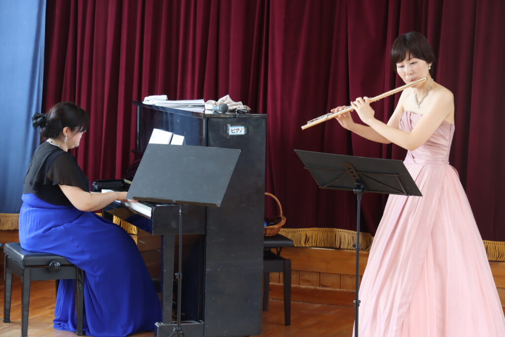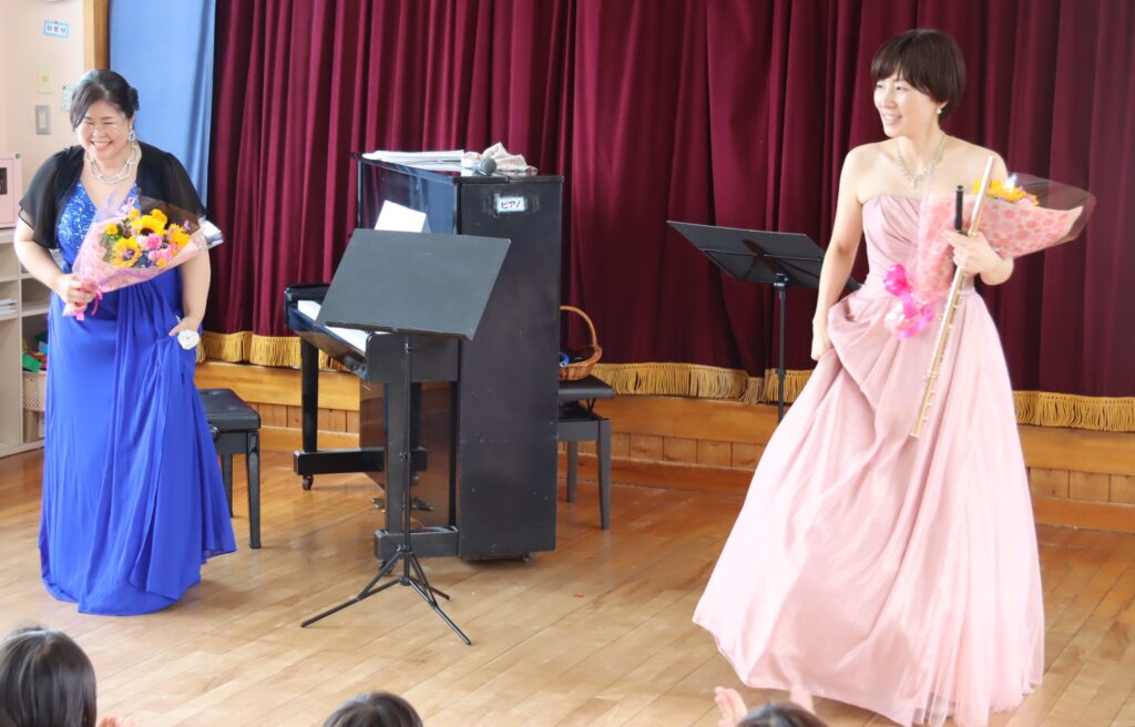 7月21日(木)は都城市にある「天竜第二幼稚園」に訪問しました。この日演奏をお届けしたのは、第3期アーティストの熊谷愛香さん(フルート)と第5期アーティストの野﨑さやかさん(ピアノ)。コロナ禍の影響で二度の延期を経て、今回ようやく実施することができました!