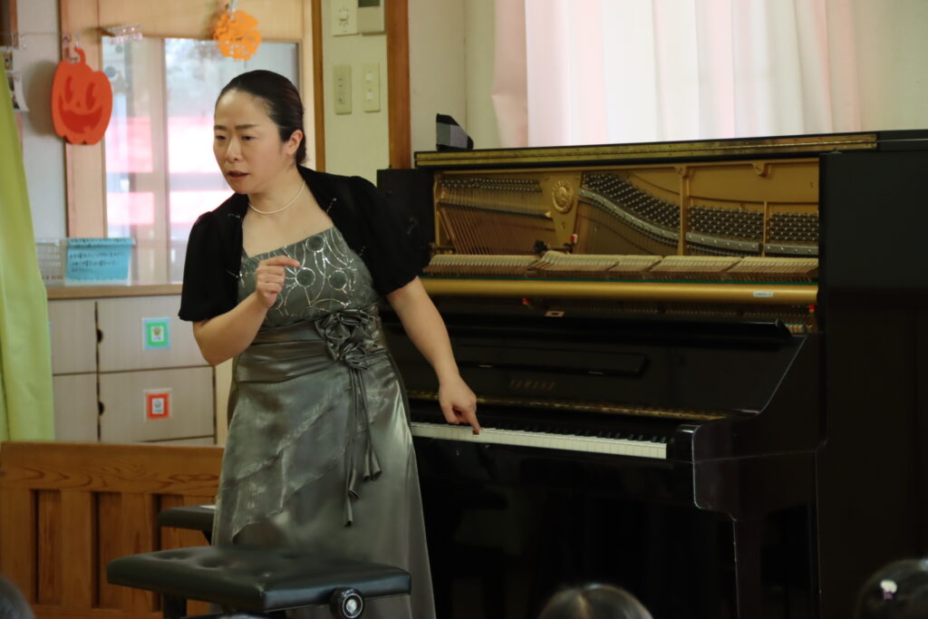 10月10日(火)は延岡市にある「こすもす保育園」に訪問しました。演奏をお届けしたのは、ピアニストの佐貫冴美さんです。