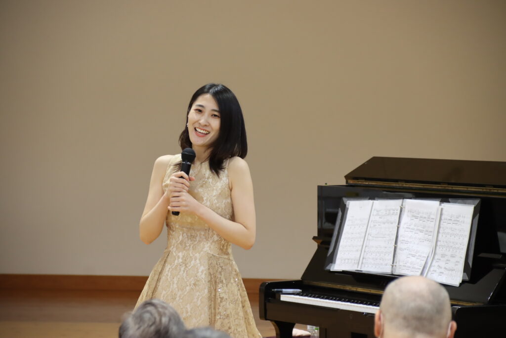 まず1曲目はショパン作曲の「小犬のワルツ」。私の大好きなショパンの曲を演奏して公演をスタートしました。2曲目はランゲ作曲の「花の歌」を演奏し、皆様にもお好きな花を想像しながら聴いていただきました。