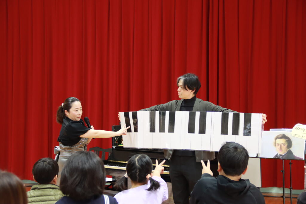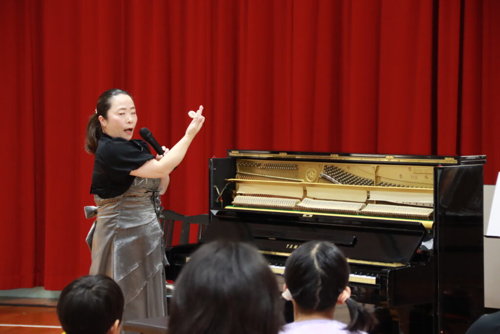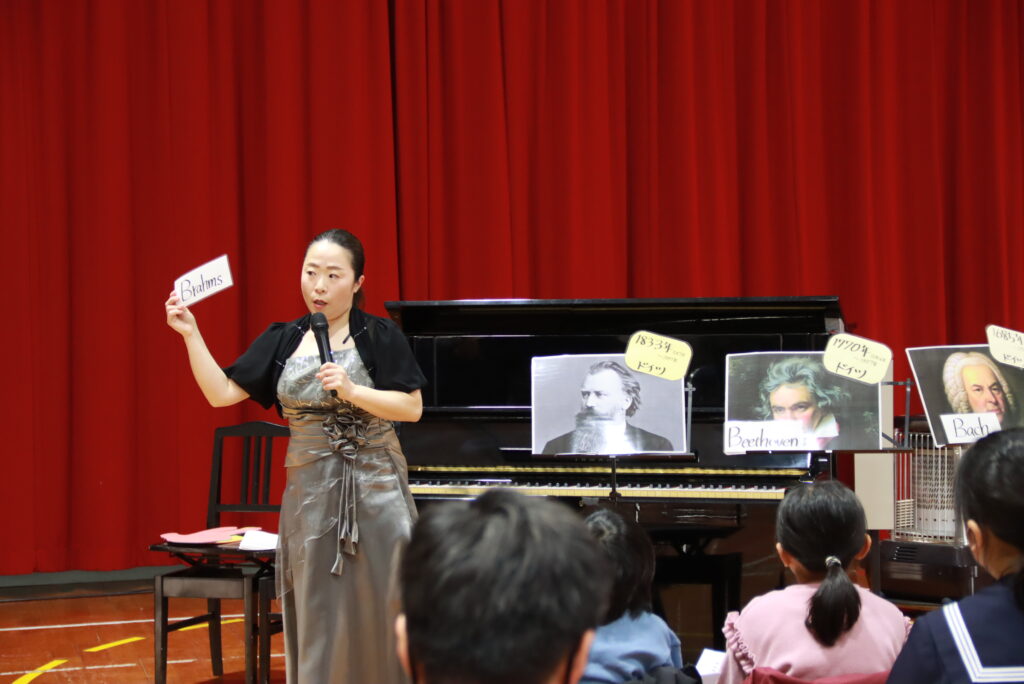 次の2曲は動物をテーマにした作品を演奏しました。身近な生き物について質問してみると予想外の答えも出てきて興味深かったです。活動当初は、お話と演奏の両立が難しかったのですが、こうして近い距離で双方向のコミュニケーションをとりながらコンサートができることこそ、アウトリーチコンサートの魅力だと思えるようになりました。