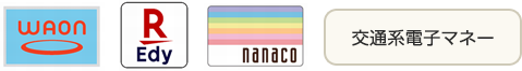 - ●電子マネー:iD、waon、楽天Edy、交通系電子マネー、nanaco、QuickPay